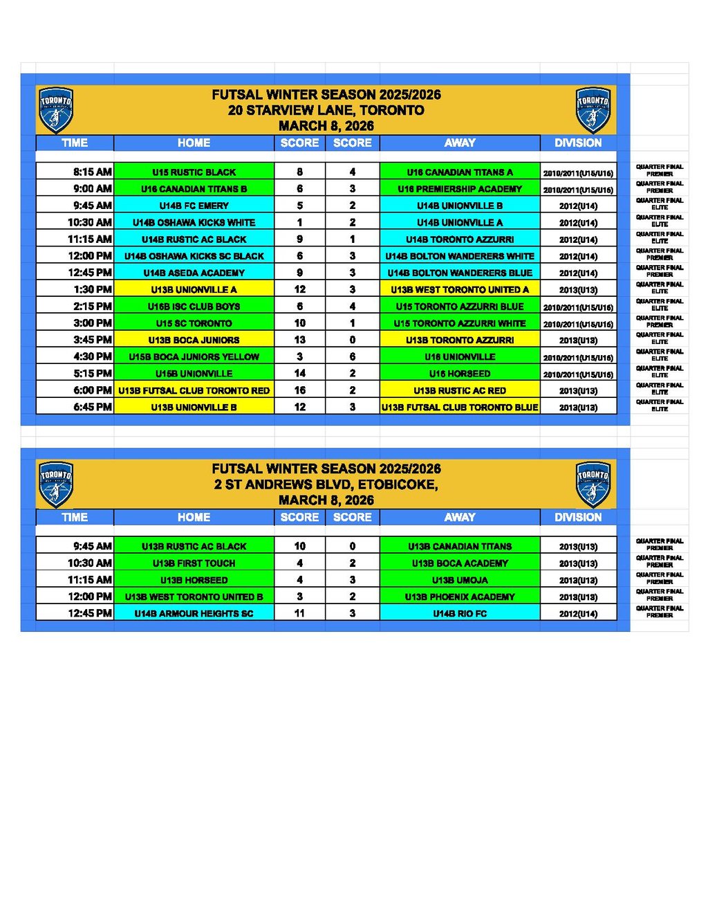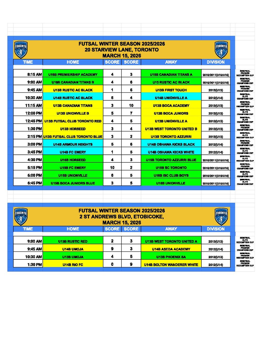 Games Schedule