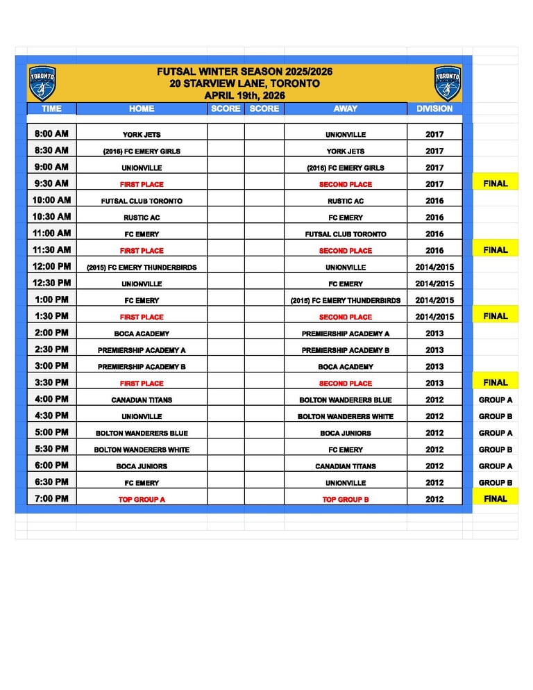 registrations for the SPRING CLASSIC festival is closed, games will be played on April 19th