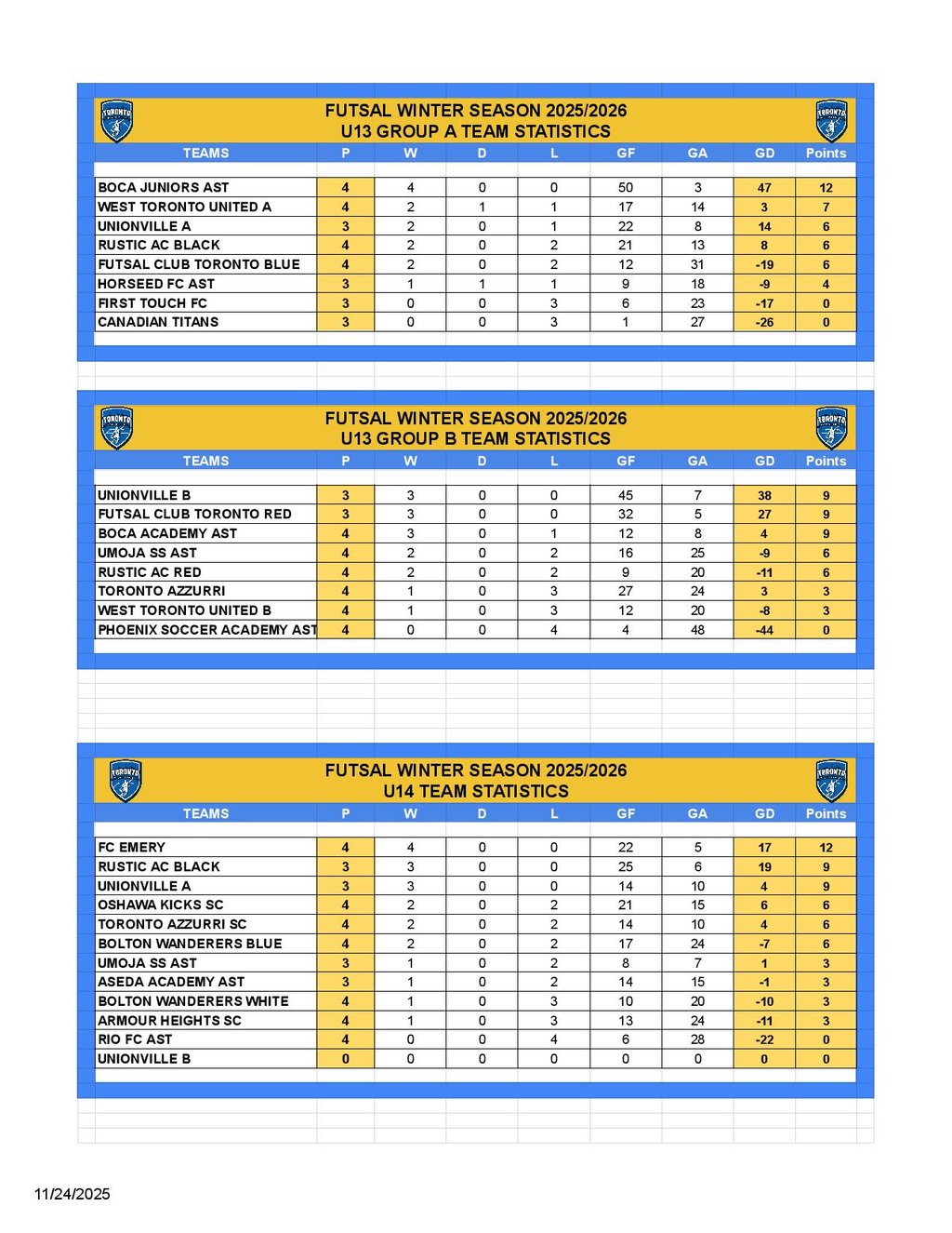 Games Schedule