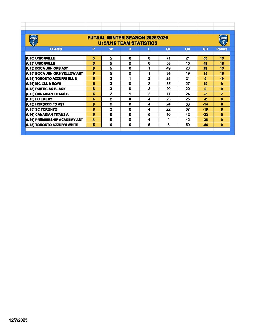 Teams Statistics